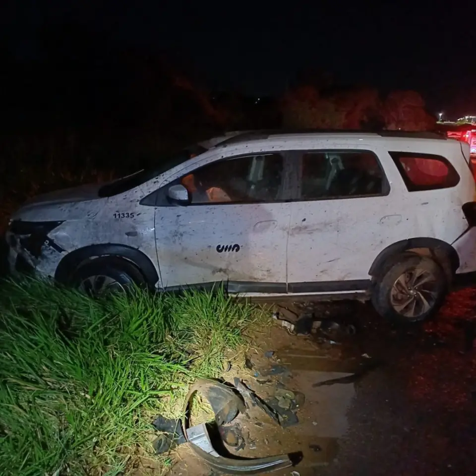 Em seguida, uma carreta que trafegava no local atingiu violentamente os veículos já envolvidos na colisão. O impacto foi tão intenso que o Fiesta acabou sendo arremessado contra o Chevrolet Spin, que havia parado na pista para prestar sinalização.